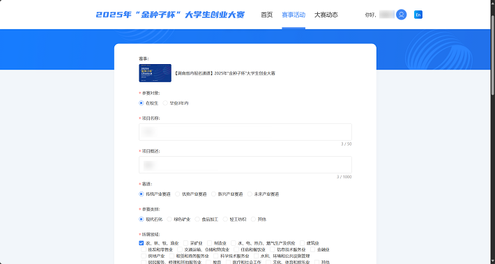 赛道选择:项目应全面对接湖南“4×4”现代化产业体系,在传统产业、优势产业、新兴产业、未来产业4个赛道中选择其一报名,不得多报。各赛道具体产业领域参照省赛标准执行。